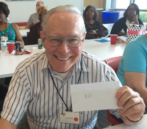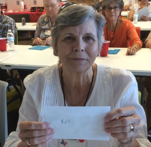 Our President Gary Luckett, a man of many talents, was our Bingo caller this year. Gary got things under way and the table of White Elephants began to diminish as prizes found their new homes. Everyone received one prize and, as is usually the case when she attends, Lydia Barker brought an additional two briefcases to be played for at the end of the White Elephant Bingo.