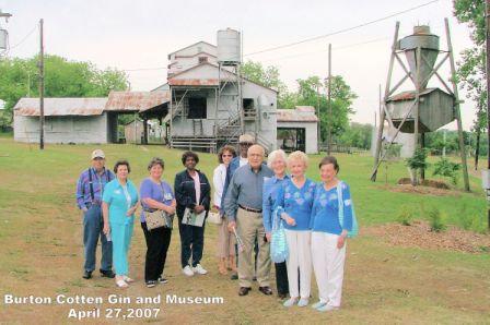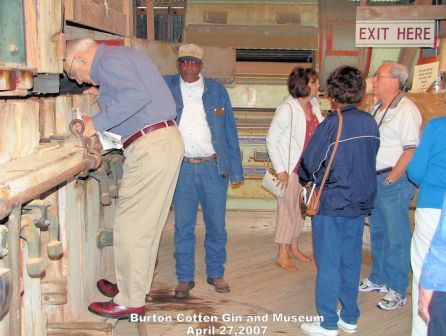 Linda Russell, the Museum Administrator, gave us an excellent 'show and tell' covering the planting, picking, ginning and final processing/accessing of cotton. The Burton Gin is the oldest 2-story cotton gin in America and is recognized as a Texas Historical Landmark. Although it closed officially in 1974, it still comes alive the 3rd weekend in April for the annual Burton Cotton Gin Festival. A short video taken during past festivals showed our group the many operational aspects.