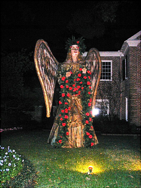 of wrapped trees. A great photo stop at River Oaks Plant House where a flying Santa along with reindeer and angels