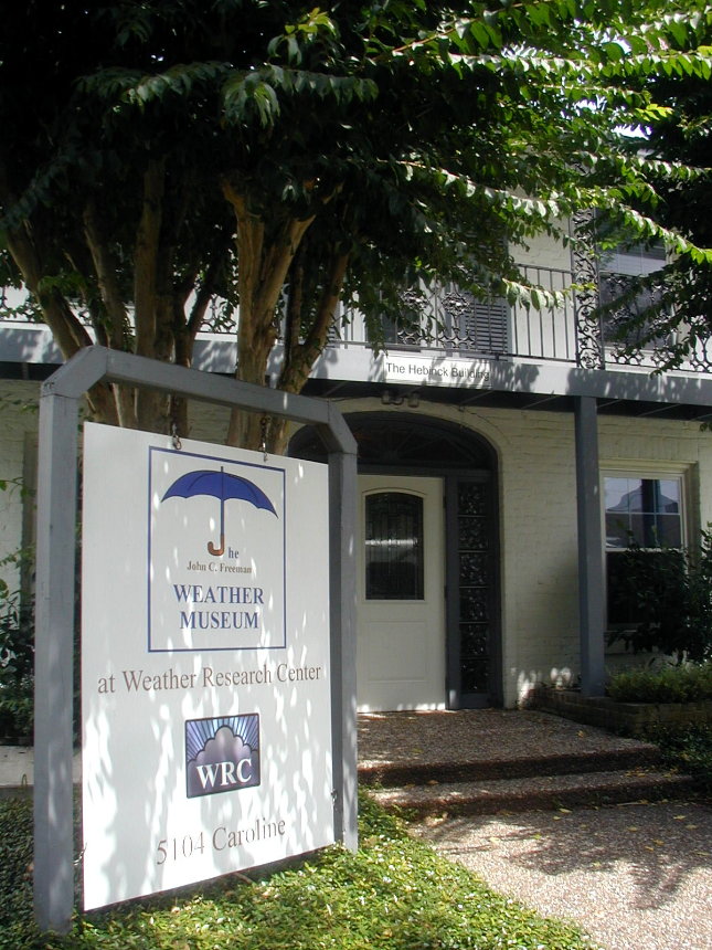 hurricane/cyclone/typhoon/tsunami phenomena and older type weather gear. A projecting, rotating weather globe showed