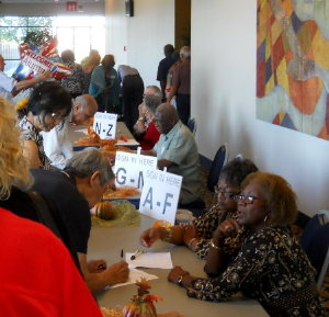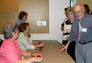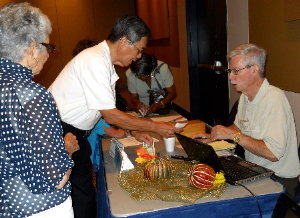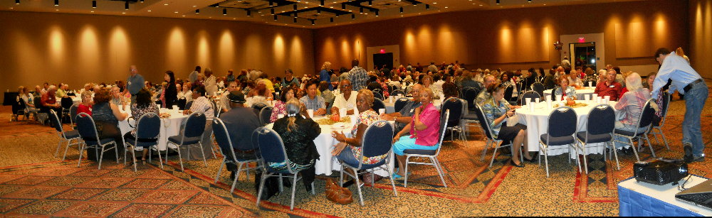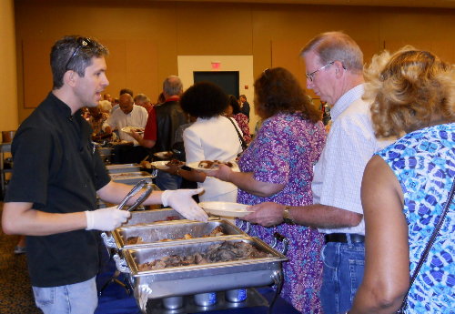 TI retirees and their spouses/guests celebrated the 24th annual TI sponsored BBQ event at the Stafford Convention Center on September 12th. The new venue was needed due to the closing of TI building #1. Stafford Centre was bright and airy with easy access from the parking lot to the large dining area. Mary Brown and Lucy Salas worked with Donna Manderscheid (TI HR) and the Stafford Convention Center to arrange the menu, tables, and the other logistics needed to make the event the enjoyable evening we could all enjoy. Thanks again to all the TIHAA board members who organized the event again. Special thanks to Daryl Moss for the hours spent generating the list of invitees from the list of TI retirees and hosting (with Brenda) the “envelope stuffing” party. Over 1000 invitations were mailed out to retirees in the Houston area. As the 266 guests arrived they were given a name tag, a key chain with LED light, and a raffle ticket for gift cards to be drawn later. When the guests were seated Mary Brown welcomed the guests pointing out the drinks available and describing the 2 serving lines. ![]() Treasurer Gary Luckett invited guests to visit the back tables with flyers showing TIHAA activities and pick up a membership