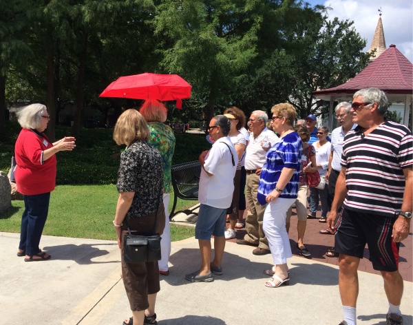 Houston June weather aside, a group of 20 hearty Day Trippers joined our guide, Sandra Lord from Discover Houston Tours on a Broomstick Adventure, to highlight some of Houston's history and even a few ghost stories to cap things off. We boarded the Harris County bus at Bayland Park at 10:30 AM and soon arrived in downtown Houston for our adventure.