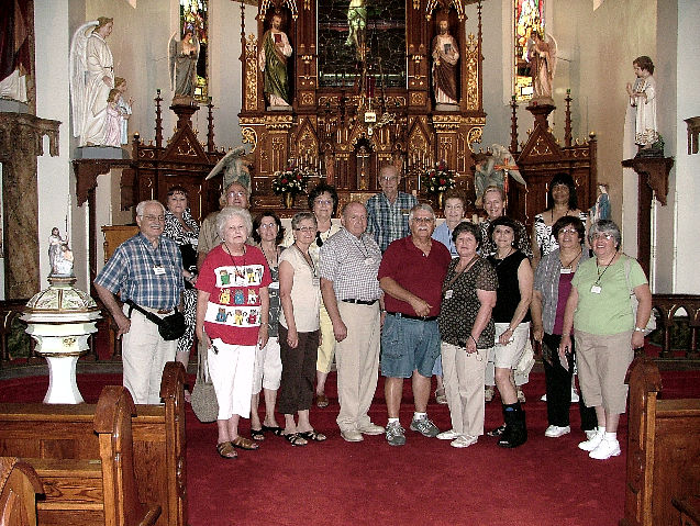 It was a beautiful but warm Monday morning when we loaded the Harris County bus at Bayland Park for the "Painted Churches" tour in Fayette County. We arrived in Schulenburg to pick up our tour guide Ben Sustr. He didn't hesitate to give the driver, Cheryl a cassette with polka music for us to listen to while traveling. Everyone seemed to enjoy his jokes and knowledge of the community and the Churches.