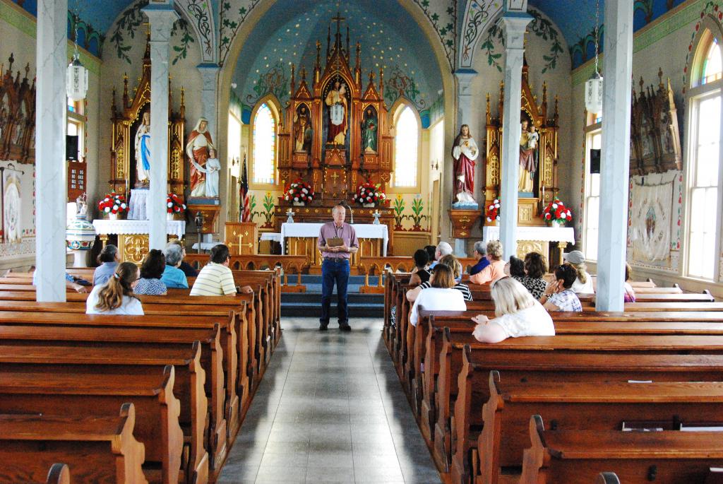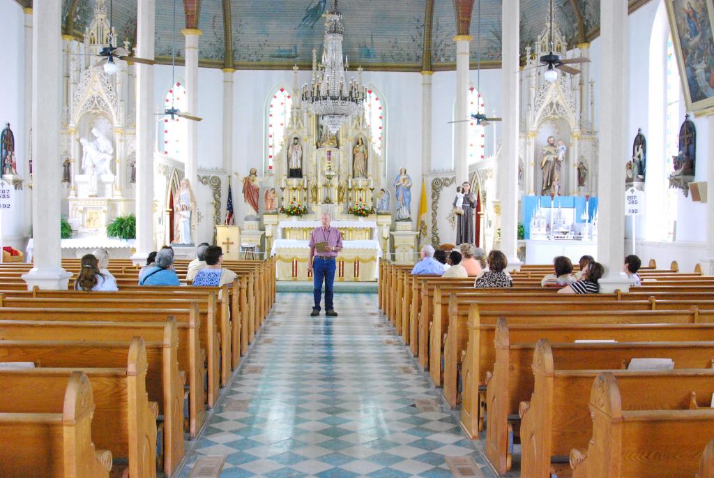 St Mary's Church of the Assumption in Praha is the only one of the four "Painted Churches" south of I-10 and was founded in 1854. The stone church was dedicated in 1895 with murals and the ceiling is decorated with symbols, angels, gold scrolls, vines and different types of flowers and shrubs. Behind the altar the Swiss-born painter Godfrey Flury, painted Prague's main cathedral, St Vitus.