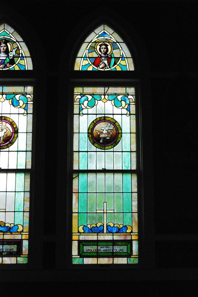 Our first church, Sts. Cyril and Methodius Church in Dubina (a variation of the Czech word for oak), was first built in 1876 and destroyed in 1909 by a hurricane. Rebuilt in 1912, it survived a fire that destroyed the town. This elegant white wooden church has the wrought-iron cross topping the steeple that was made by a former slave.