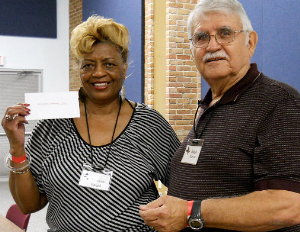 These Super Bingo prizes were either purchased by the club or donated by members. We would like to thank Patsy Seay and Daryl & Brenda Moss for their generous donations. The winners of the SUPER BINGO prizes were: Glenda Winton - First Door Prize of a night for two at the Crowne Plaza Hotel with breakfast; Deloris Baugh - $50.00 gift card; Israel Morales - coffee maker; Nora Morales - Waffle Maker; Mary Lee Cameron - Coffee Maker; Howard Cameron - $30.00 gift card; Bobbie Jean White - Blood Pressure Machine; Alva Espinoza - $25.00 Gift Card; Alva Espinoza -Crock Pot; Glenda Winton - Workshop Drill; Veronica Flores - Rossiter; Veronica Flores - $50 Wal-Mart Gift Card; Gladys Price - $25.00 gift card; Beverly Clayton - Toaster Oven; Sonja Geisselbrecht -Table Top Grill; Sandy Zamora - MP Player; Daryl Moss - Second Door prize of one night for two at the Crowne Plaza Hotel with breakfast. Kudos go to Ralph and Estella Garcia who again put on a great show for the entertainment of our fellow TIRET members.