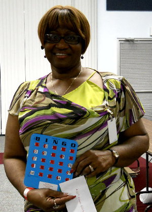 Everyone was a winner of one or more white elephant bingo gifts. Many of these gifts were actually good gifts. Some were so, so and some were funny and real surprises. The only question was who was going to win next and what kind of gift they would win. Now the free bingo came to one more prize. A more valuable gift was up for grabs - this game was for a $50.00 gift card. It was won by Deloris Baugh. After that $50 win, the attendees knew that the fun and excitement of the big prizes was yet to come with the SUPER BINGO. The sight of all of the prizes on the table made the guests wish they had their favorite good luck charms, rabbit’s foot, four leaf clovers, a cross, a prayer, rubbing the bingo card, or whatever worked. There was a noticeable silence and calm among the guests as they concentrated on their bingo cards and listened intently to every one of Don Stefan’s bingo number calls.