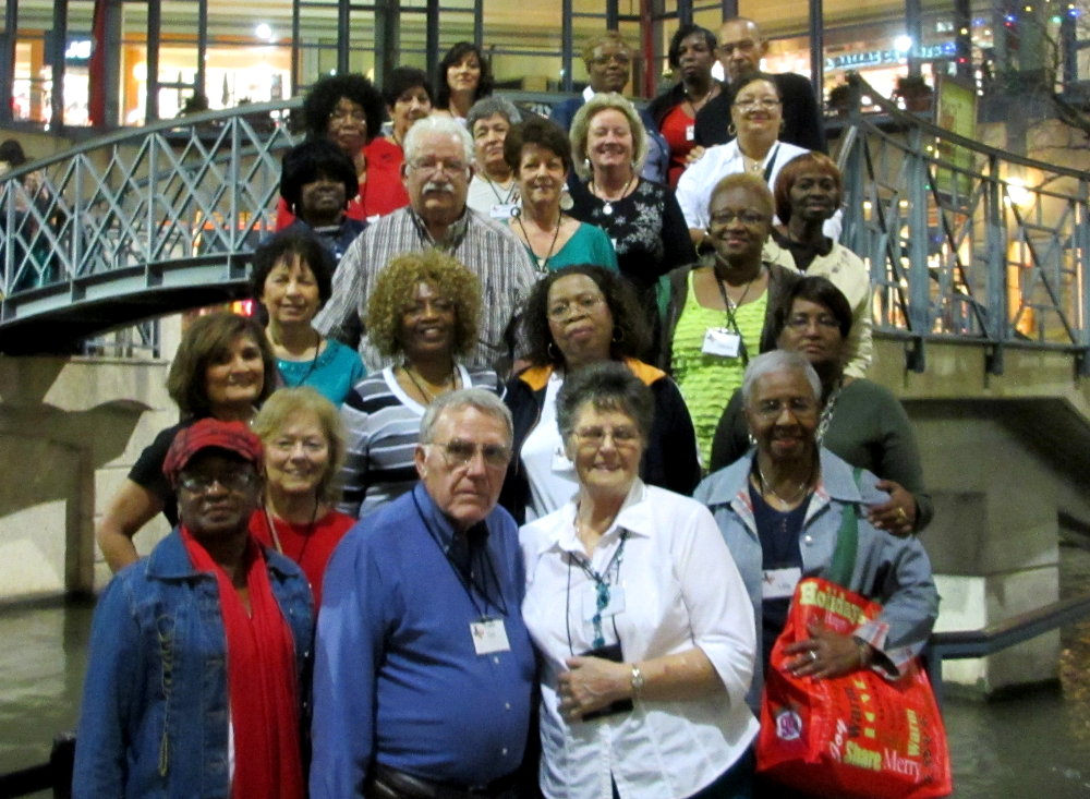 As soon as the bus was parked at the Rivercenter Mall, our group disembarked and made a run to shop or seek that special dinner on the river that only San Antonio can provide. They all had their map of the area and the time and place to meet the river boat. Not a person was missing when it came time to board the boat. The only thing missing was the boat! This was soon resolved and we were on our way! The lights along the river were breathtaking; we felt like it was raining the colors of the rainbow all around us. Wait….weren’t we supposed to have rain, wind and cold weather as we floated down the river? God is GOOD!! We had a beautiful trip on the river. However, the weatherman was not too far off since we had barely left San Antonio when the wind and rain started to rock the bus. At that moment we were glad we did not have to drive in that horrid weather and thanked God for our good bus driver, Chris.