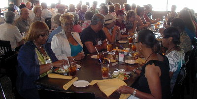 After the trip we left to eat at The Monument Inn, located further down the Ship Channel. The food was awesome and enjoyed by EVERYBODY. Pictures were taken and the view of large ships passing by on the Ship Channel was enjoyed by all. Coming back to Bayland Park the bus driver, Larry Gurka, kept us laughing and made us go down memory lane by asking us questions about Texas history and culture. The winners of prizes in the bus drawing were Ralph Garcia, Dolores Baugh, Kay Cook, Gladys Price and Dorothy Wade