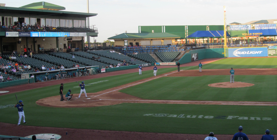 It was sparse attendance overall - 2895. The tickets were situated generally along the far first base side. Glancing around, familiar faces were scattered among two sections. And certainly our ticket prices were right - free courtesy of the City of Sugar Land.